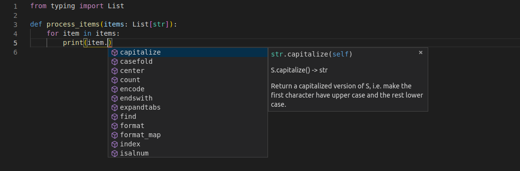 But now, imagine you are again in the middle of creating that function, but with type hints.
